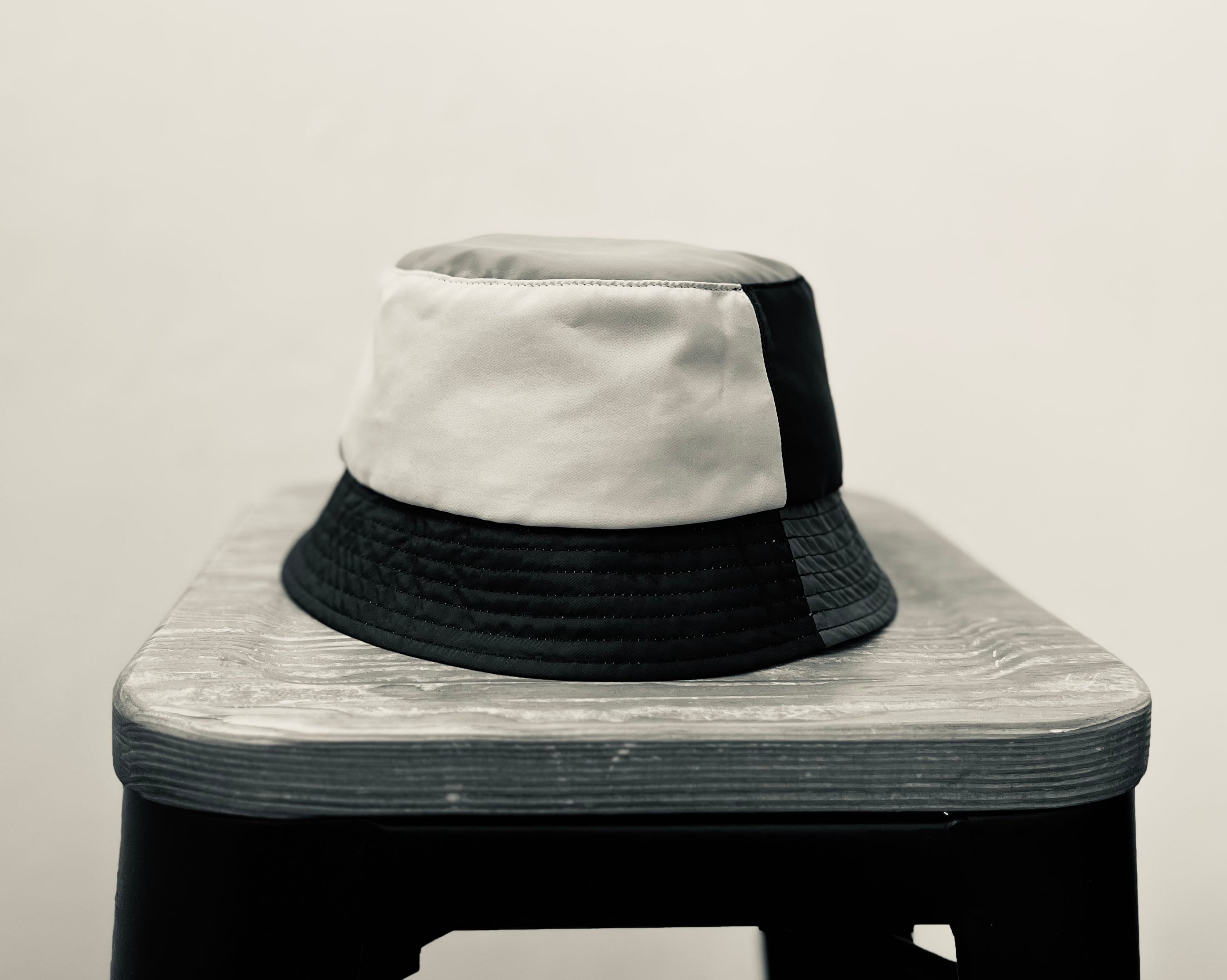 -THE TRIANGLE HURRICANE- 再構築帽子ブランドライン。 USのスポーツジャケットを再構築したバケットハット 1点物です。 FreeSize : 頭周り〜60cm