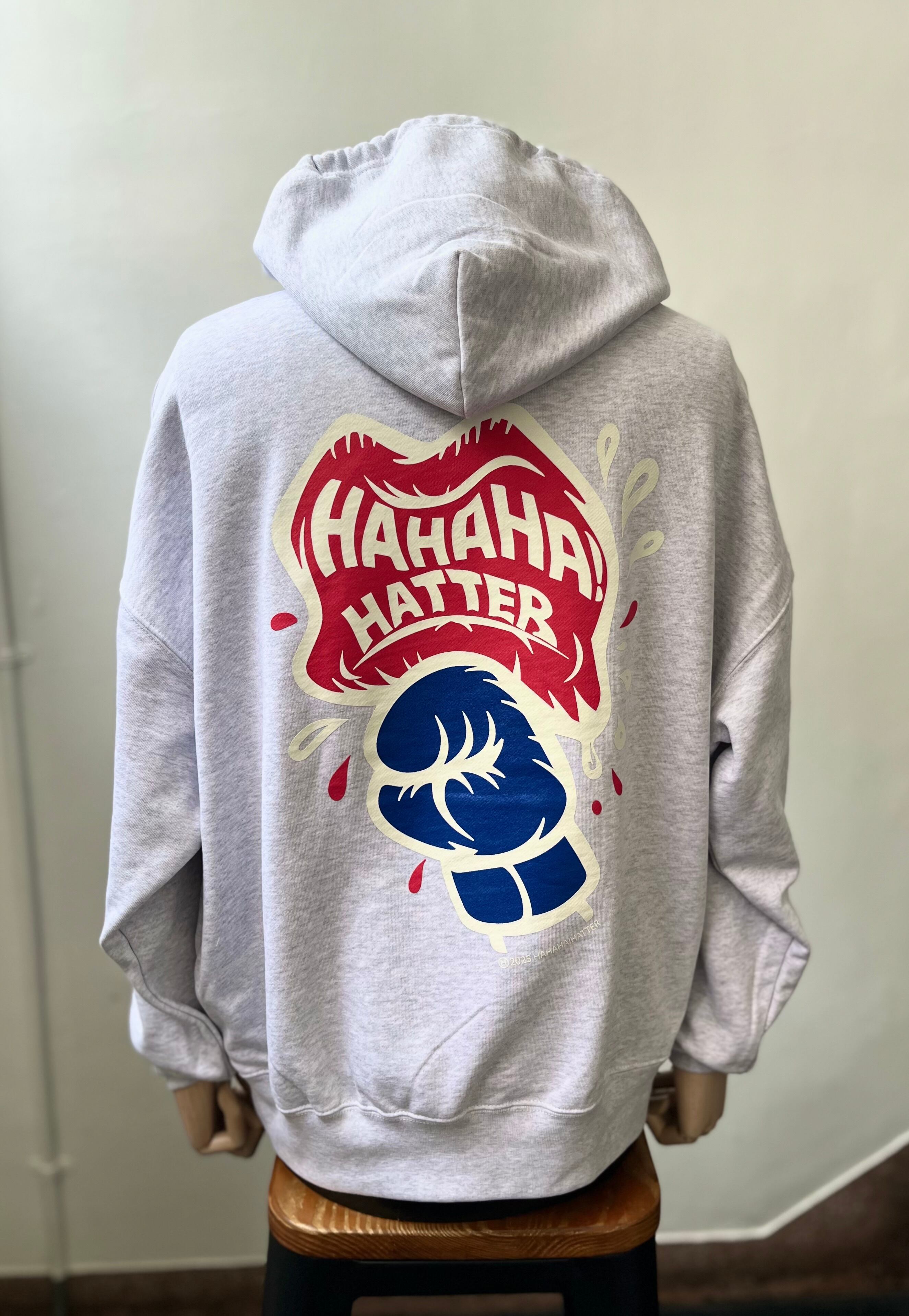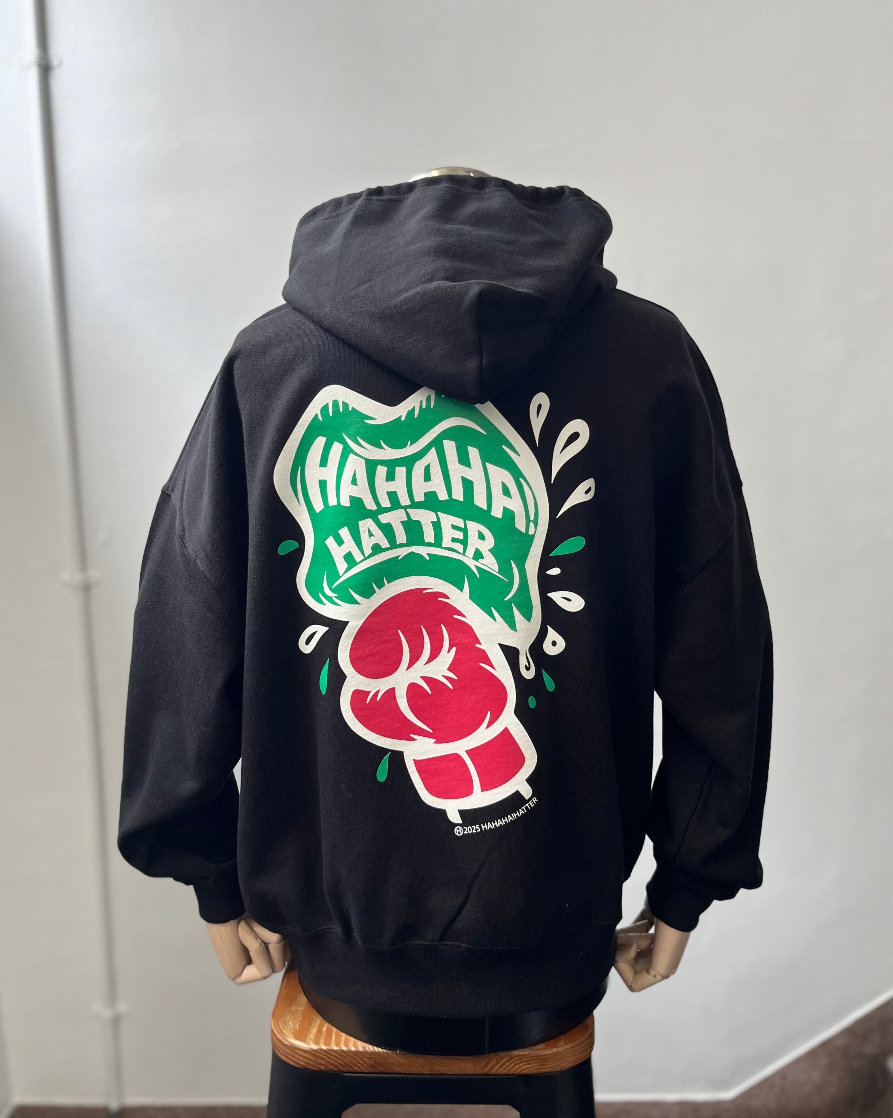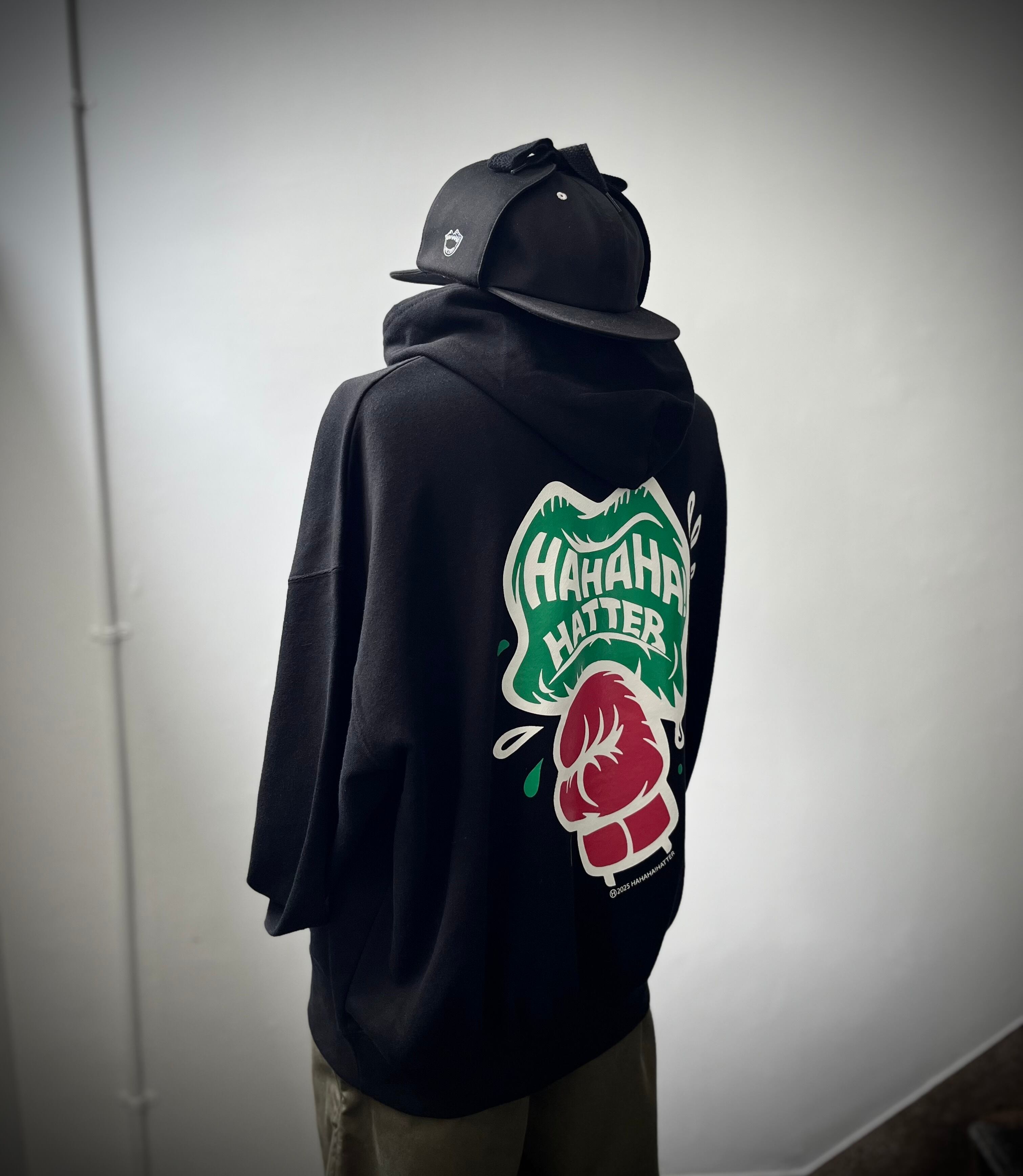 フロントは帽子にも使っている3D刺繍ロゴでシンプルにしてバックプリントに今回のアッパーカットロゴをプリント。グローブカラーをチャンピオンサイドとチャレンジャーサイドで分けたプリントカラー展開になっております。