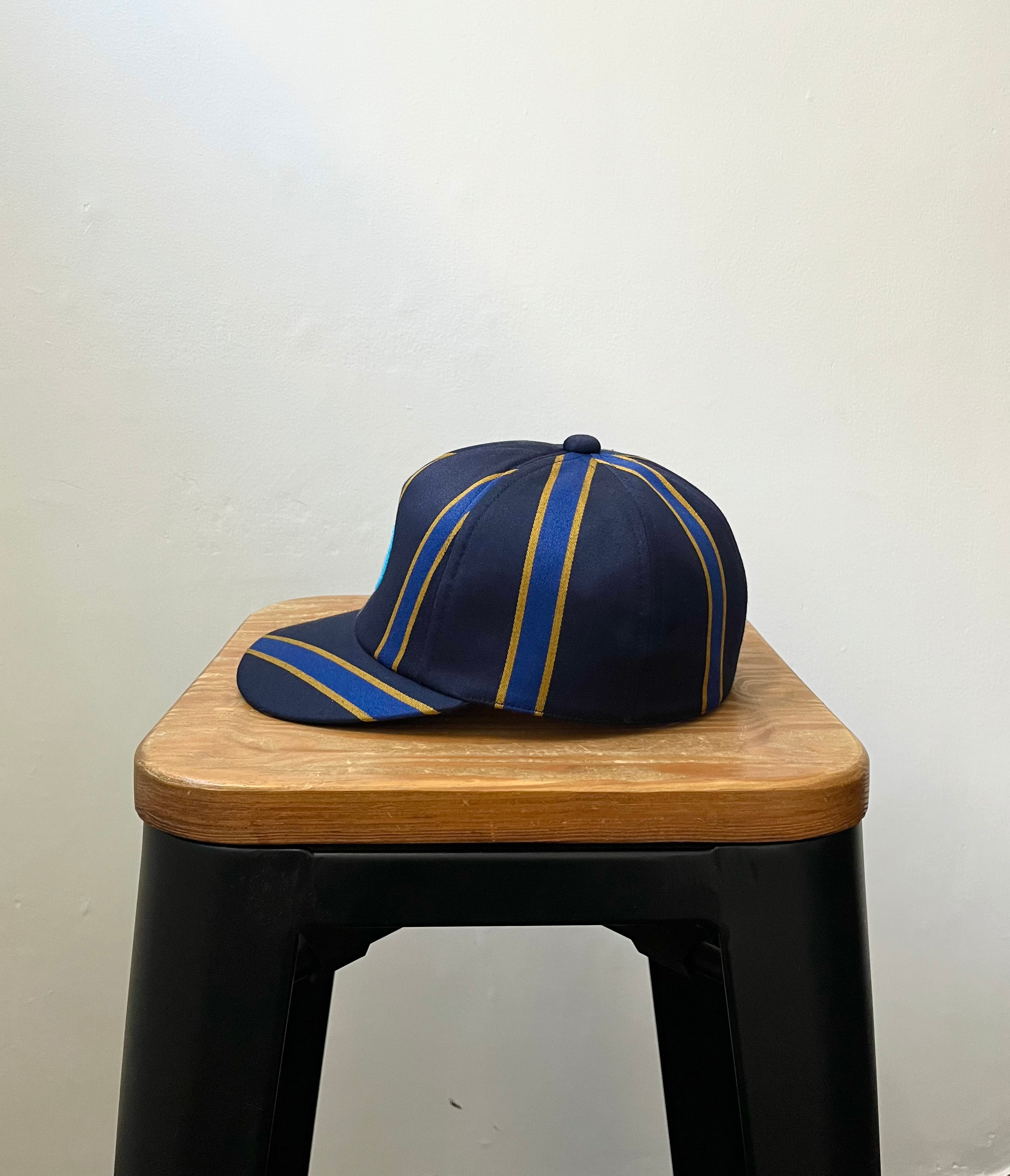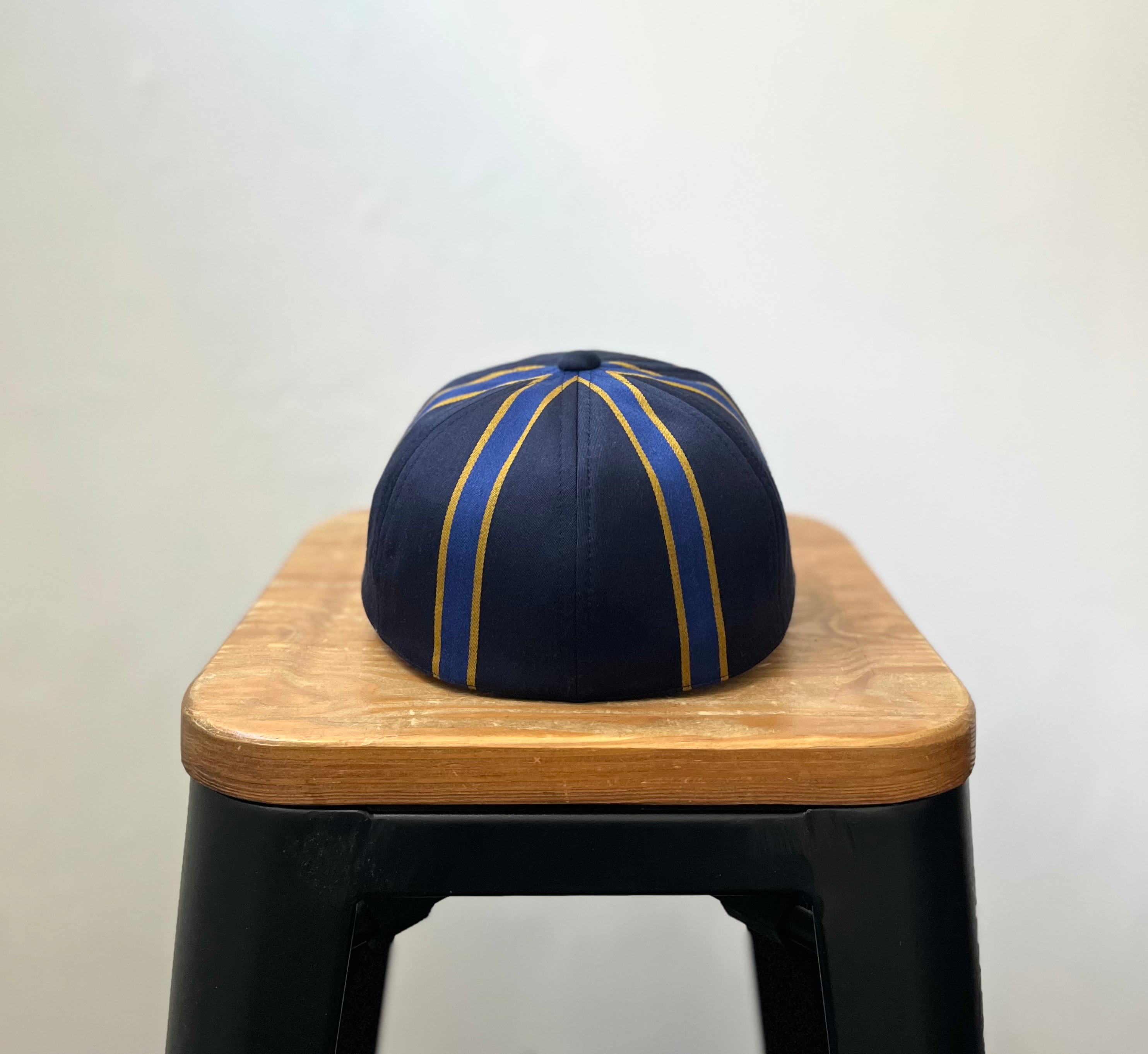 HAHAHA!HATTERの定番キャップモデルG-DadCap。古いベースボールキャップをベースに型をおこしました。現行のベースボールキャップでは珍しい幅が広いツバがポイント。後ろはアジャスターが無くスッキリしたバックスタイル。内側にフリーサイズアジャスターを使っているので、散髪で多少ボリュームがなくなってもサイズを縮める事ができます。お爺さんがジャケットにかぶっているキャップをイメージしたこのモデル。フォントは私が好きなスタウトビール会社のフォントをオマージュ。チェーンステッチで刺繍してもらっています。
